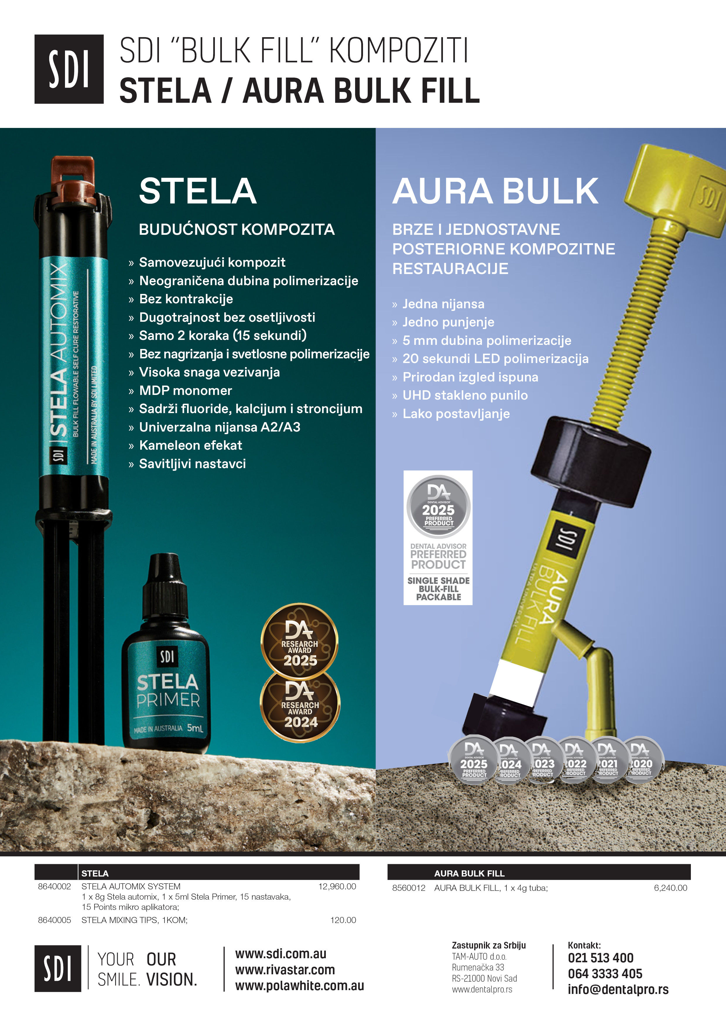 Stela je posebno formulisana kao restaurativ koji se može koristiti kao alternativa amalgamu, sa dodatnim prednostima u vidu stvarne estetike i kaviteta bez mehaničke retencije.